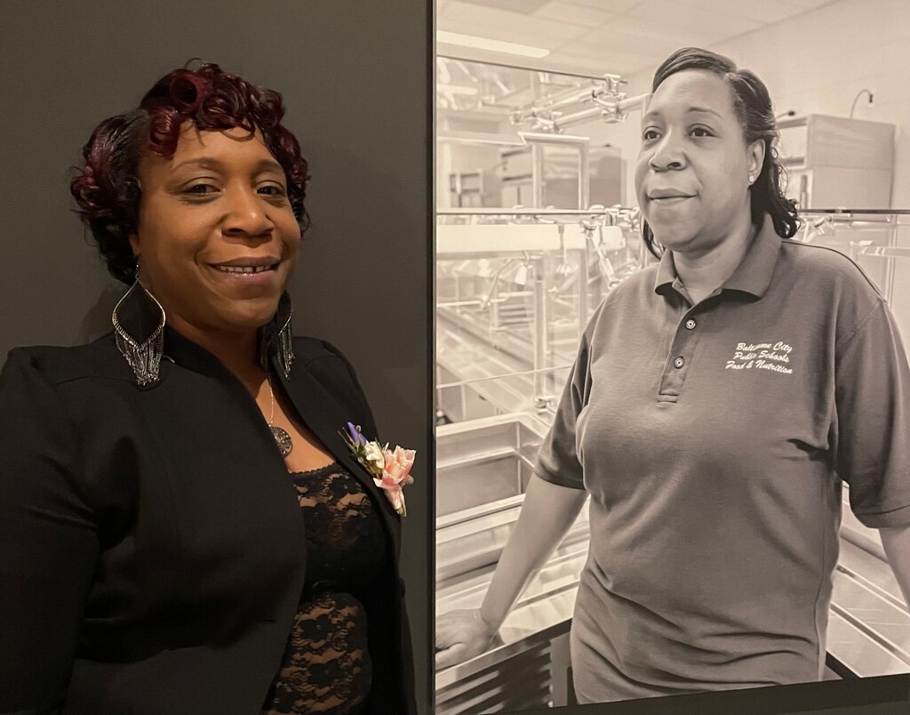 Baltimore leaders including city schools CEO Sonja Santelises turned out last Thursday at the Baltimore Museum of Industry for the opening of “Food for Thought,” a photo exhibition honoring the hardworking and long-serving staff of school cafeterias.