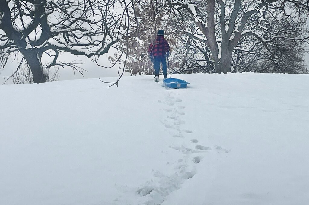 But then it started snowing on Martin Luther King Jr. Day and kept going all night. By Tuesday morning, the planned two-hour delay had become a full-blown cancellation. And the young boy, who’d already gone into the basement to retrieve the sled he’s never really used, was pulling on his little lumberjack flannel and standing by the door.